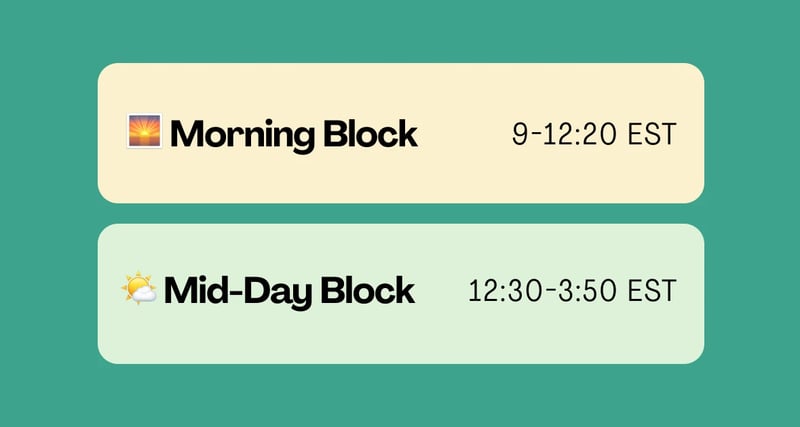 Sora has 3 hours and 20 minutes of live classes and office hours on Monday, Tuesday, Thursday, and Friday. Your family can choose from two flexible time blocks to fit your schedule (or mix and match for even more flexibility).