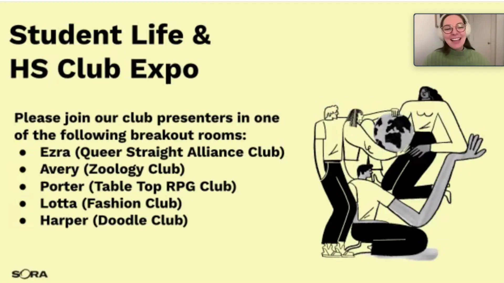 The future high school students met with high school leaders of a variety of clubs: Queer Straight Alliance, Zoology, Tabe Top RPG, Fashion, and Doodle. Sora students propose their own club ideas if there are topics or interests they want to explore that are not already represented.