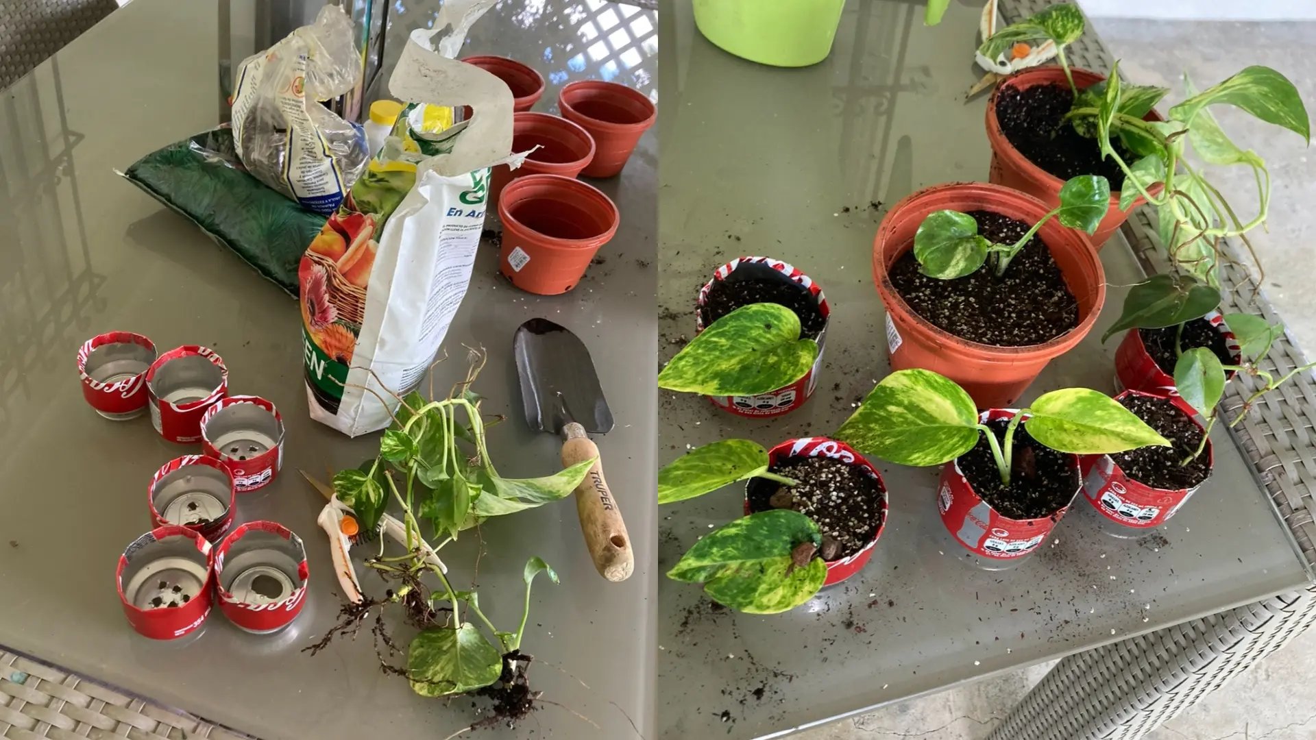 Upcycled soda cans turned into planters! What a great example of reuse.