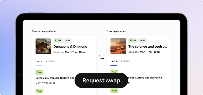 Expedition Swap is live! This is a brand-new feature in Sora Home that empowers students to adjust their schedules. With expedition swap requests, you can view alternative options to expeditions you’re currently registered for, see how they would appear on your schedule, and what kinds of units and abilities you would earn. The Swap window for Cycle 4 is currently closed. We are excited to offer this new feature to Sora students and families.