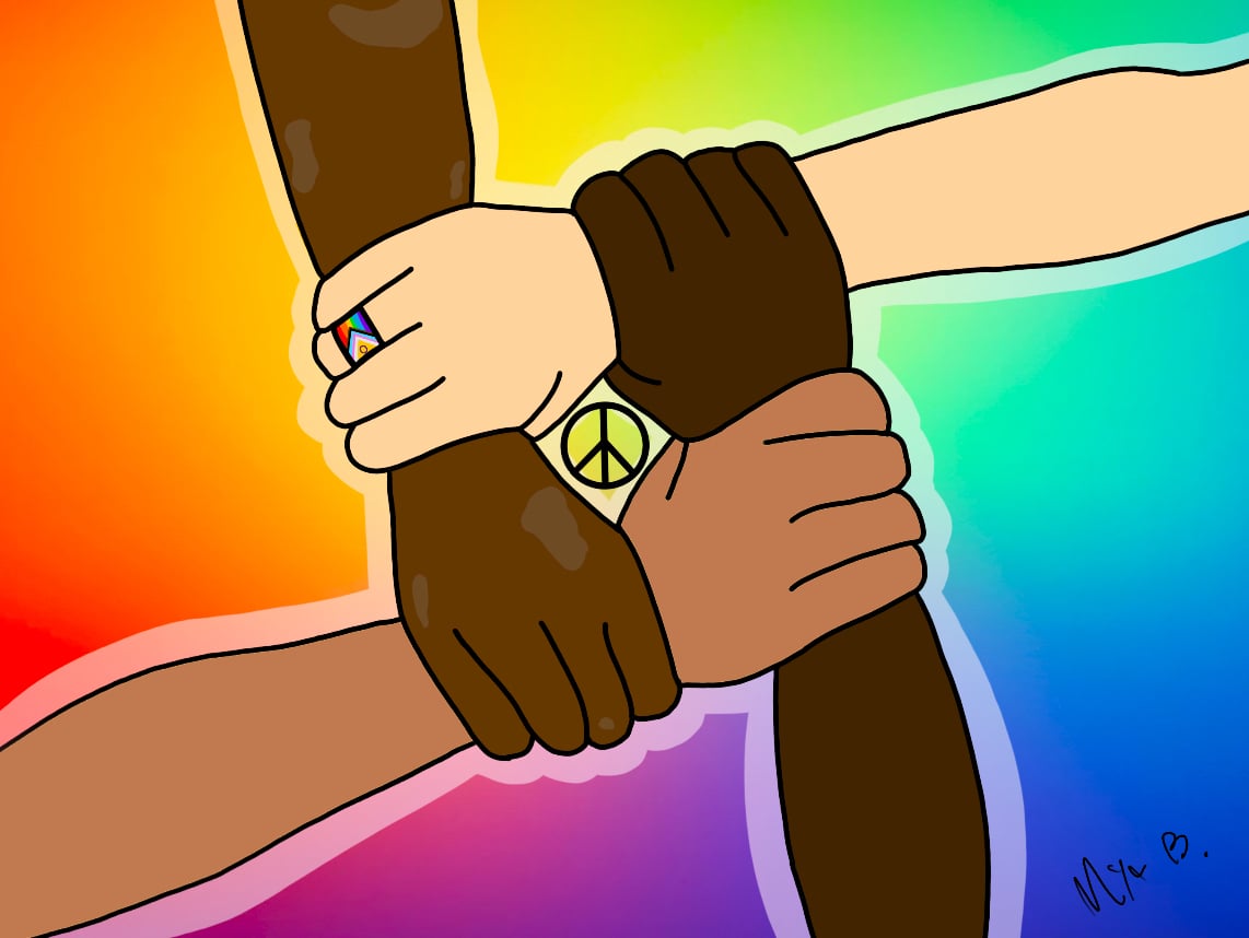 It is called "Equality" and is made with an app called Kleki. This art represents that no matter the nationality; race; or sexuality, we are equal and shouldn't look at others or ourselves differently.
