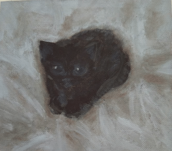 For the fall 2025 issue of The Inkwell, Cameryn contributed a reflective piece centered on two three-week-old foster kittens, Oliver and Oscar. Through her accompanying paintings, she recounts the contrast between the kittens’ personalities—Oliver, the sleepy and gentle tuxedo, and Oscar, the adventurous black kitten always trying to wriggle free. Though they appeared healthy when first found in an attic with no trace of their mother or siblings, the kittens suddenly fell ill and were quickly taken back to the shelter for testing. They were diagnosed with Panleukopenia, a devastating disease that young kittens rarely survive, and despite care, they passed away. Cameryn’s piece highlights the theme of this issue, Untold Stories, as her work features the often-untold realities of fostering: that even with love and effort, not every story ends the way we hope. Through her artwork and writing, she honors Oliver and Oscar while also highlighting the importance of adopting and fostering—reminding us that choosing a shelter pet can truly save a life.